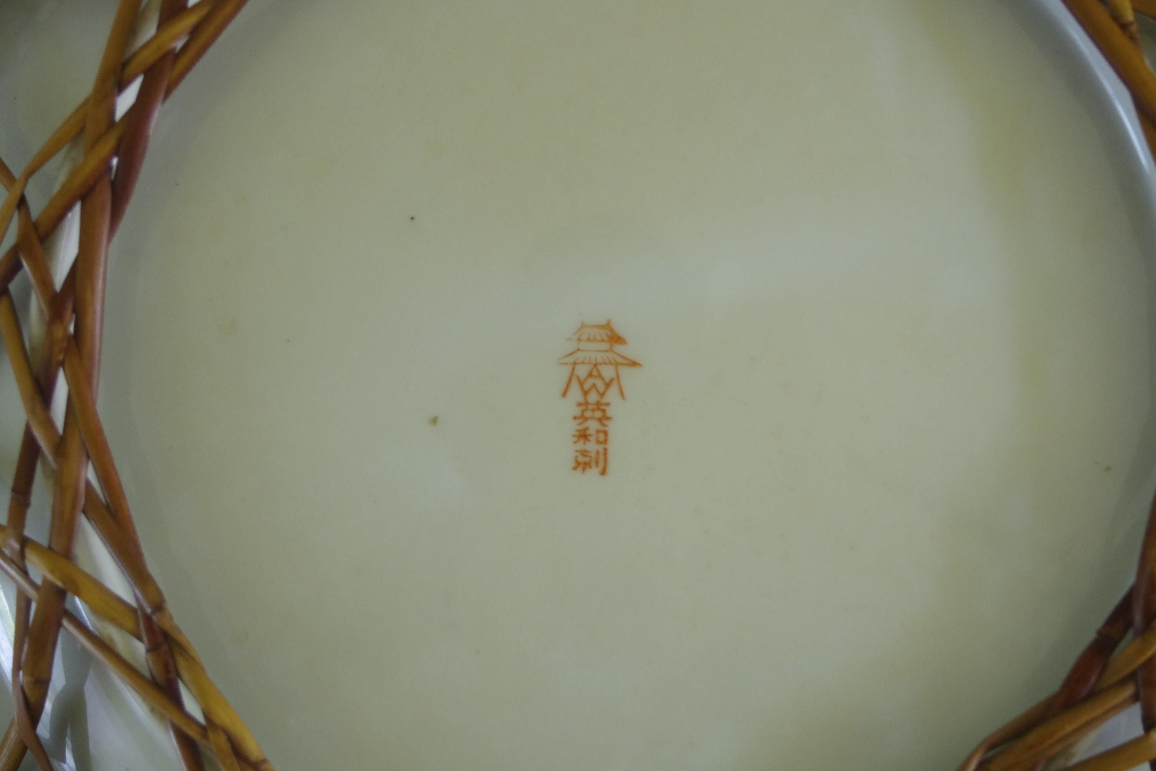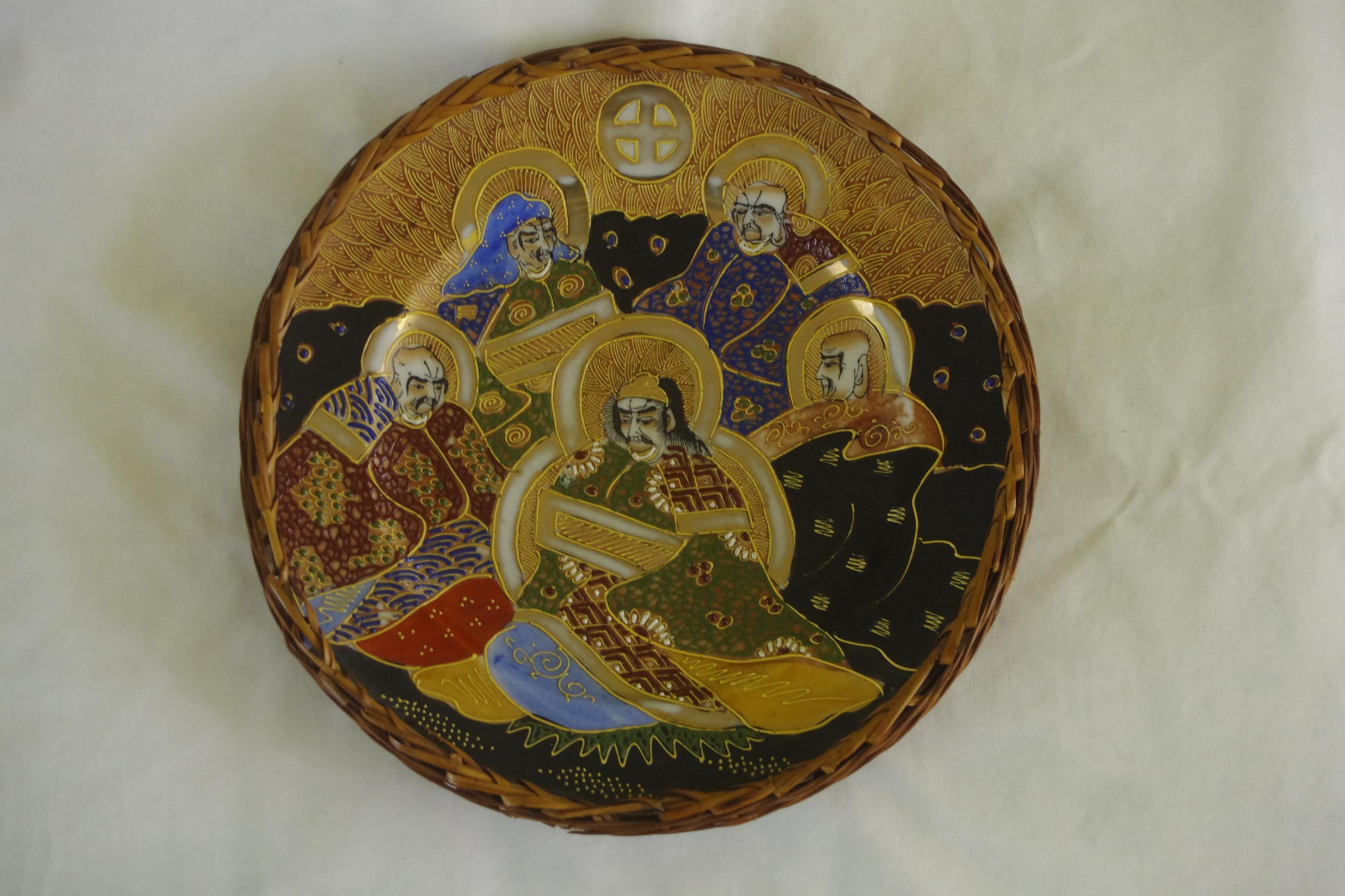 Японская тарелка сатсума пр. 1945 - 50 гг В ратанговом оплёте. Хорошее состояние, без осколов и трещин. Подписана! 65€