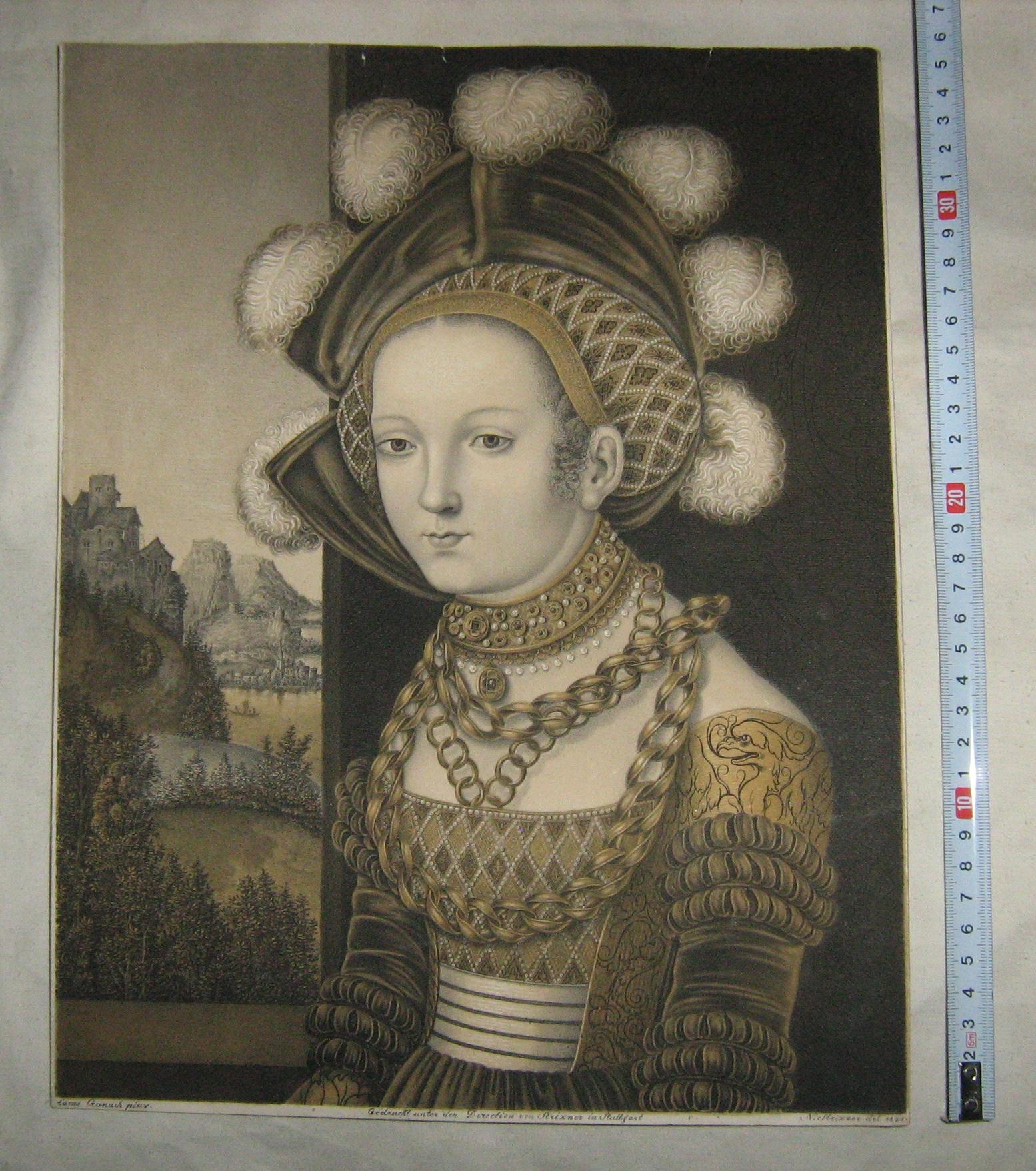 Литография с полотна Лукаса Кранаха. Штутгарт, 1825. Гравировал N. Strixner. Непомук Штрикснер (1782 - 1855), один из первых литографов, ученик и последователь Алоиза Зенерфельда, изобретателя литографии как печатной техники., размер 36 х 28 см., состояние хорошее: потёртости, надрывы, загрязнения, на оборотной стороне пометки, следы клея и повреждения от отклеивания. Имеет коллекционное значение.