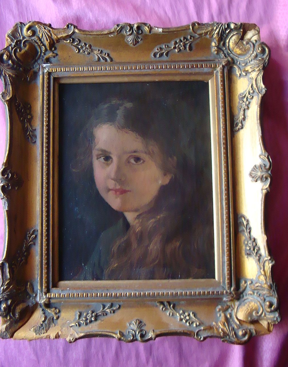 "After F Schauss - Pair of Oleographs - "Hansel" and "Gretel" - shoulder length portraits, canvases 9 25ins x 7 25ins in ebonised frames, two Baxter prints and one other print" Заметьте, что размер олеографий очень похож на размер продаваемого портрета. После этого мини-исследования я хотел бы понять, насколько возможно: 1) Продаваемый портрет - копия, оригинал или авторский повтор? Фото, не очень качественное - это все, что у меня на сегодня есть. Судя по фото, краски бледноваты, черты лица грубее, чем на моей репродукции и на фото с аукциона. 2) Не является ли продаваемый портрет вообще тиражной продукцией, например, олеографией? |