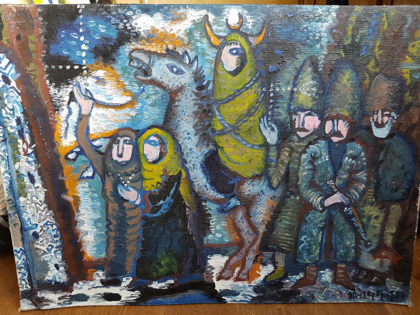 "Ночной поход" 55 * 70 х. на к. м. Дагестан, Махачкала 1988г. Эдуард Моисеевич Путерброт (1940-1993) Махачкала, дагестанский художник, член СХ СССР, лауреат республиканской премии ДАССР им. Цадесы, заслуженный деятель искусств ДАССР Участник выставок в СССР, Германии, Франции, Венгрии, Польши, Бельгии. Произведения находятся в центральном театральном музее им. Бахрушина, Музее искусств Дагестана, ДТОМ, дирекции художественных выставок СССР, художественном фонде РСФСР, в корпоративных и частных собраниях в России и за рубежом. |