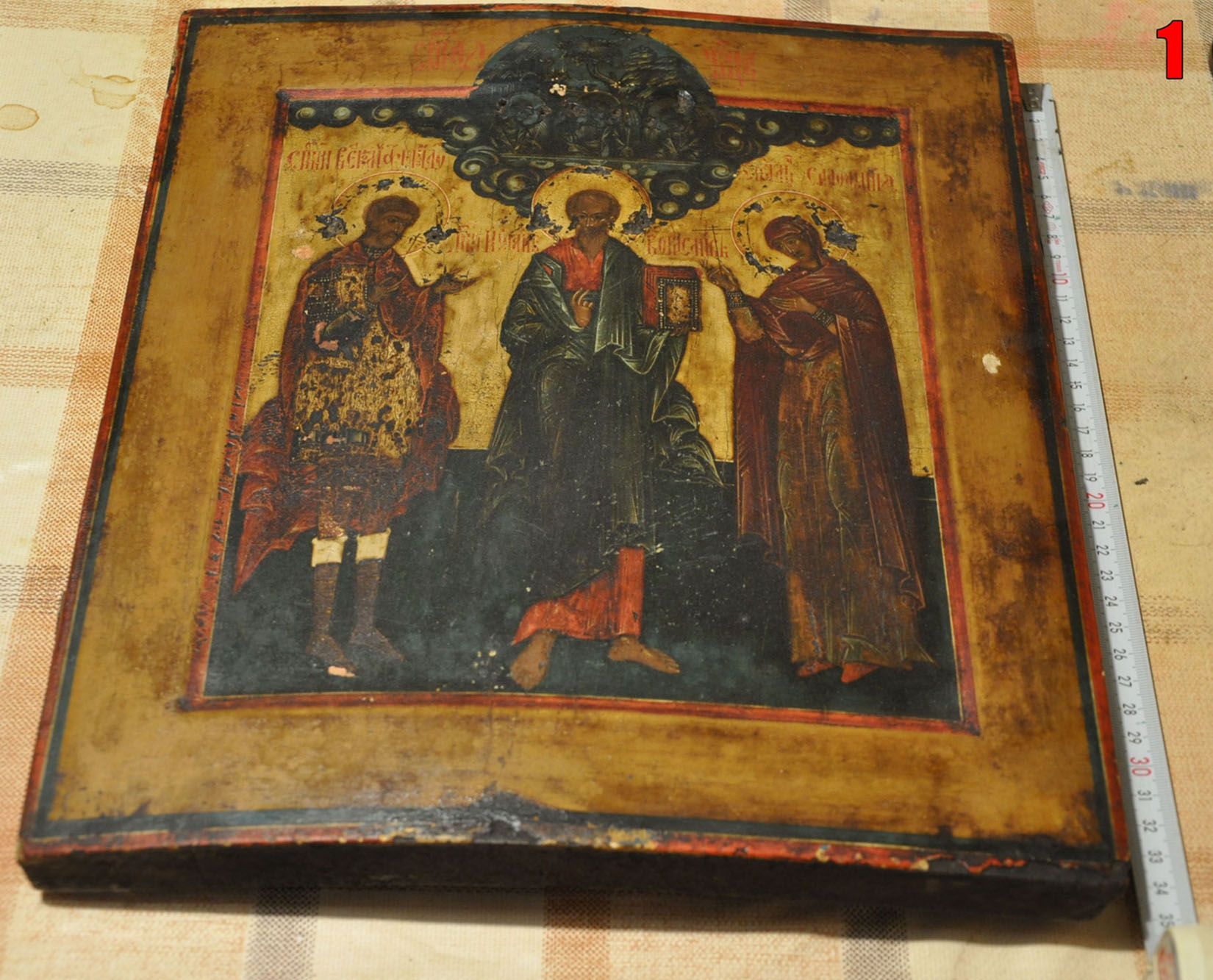 Пожалуйста, помогите с атрибуцией и хотя бы приблизительной стоимостью, чтобы понимать, от какой суммы отталкиваться. Все фотографии икон пронумерованы, чтобы было понятно к какой иконе относится снимок. Заранее спасибо! Поскольку на сайте есть ограничение на количество загружаемых фотографий, я прикреплю только с ликом и тыльной стороной (и то не у всех). Больше фотографий добавил на яндекс.дикс (ссылка) 1. 35х32 2. 30х25 3. 32х27 4. 37х37 5. 38х36 6. 25.5х21 |