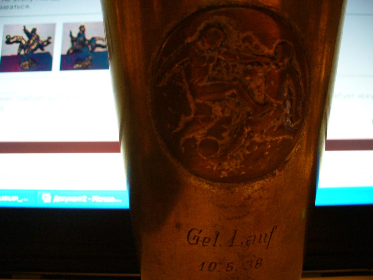 Отсутствует немецкая педантичность: подпись награждаемого (обычно на основании, камень и т.д.); автор работы указывался, практически всегда, учитывая событие - 100%. Исполнение: времена триумфа воли, а работа скорее представителя "дегенеративного" направления искусства; лица не арийские, ну и ню - это не Германии 30-х с их культом античного тела. Для примера, это фото части футбольного кубка. Прошу прощение за качество - оперативная съемка. Последний раз редактировалось U_Z; 23.11.2009 в 23:55. |