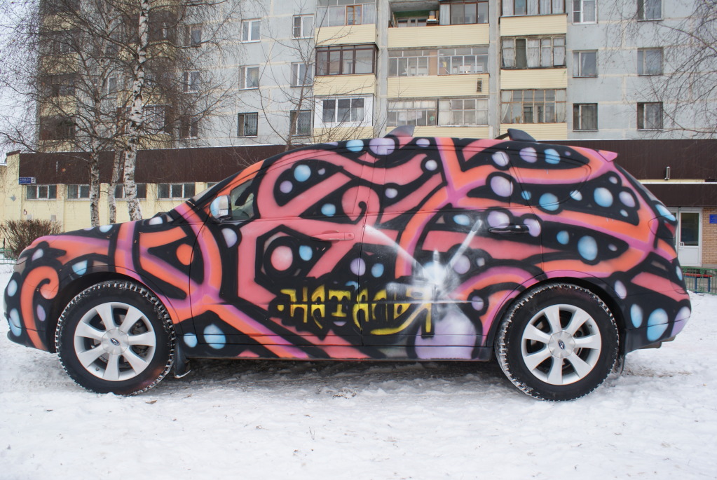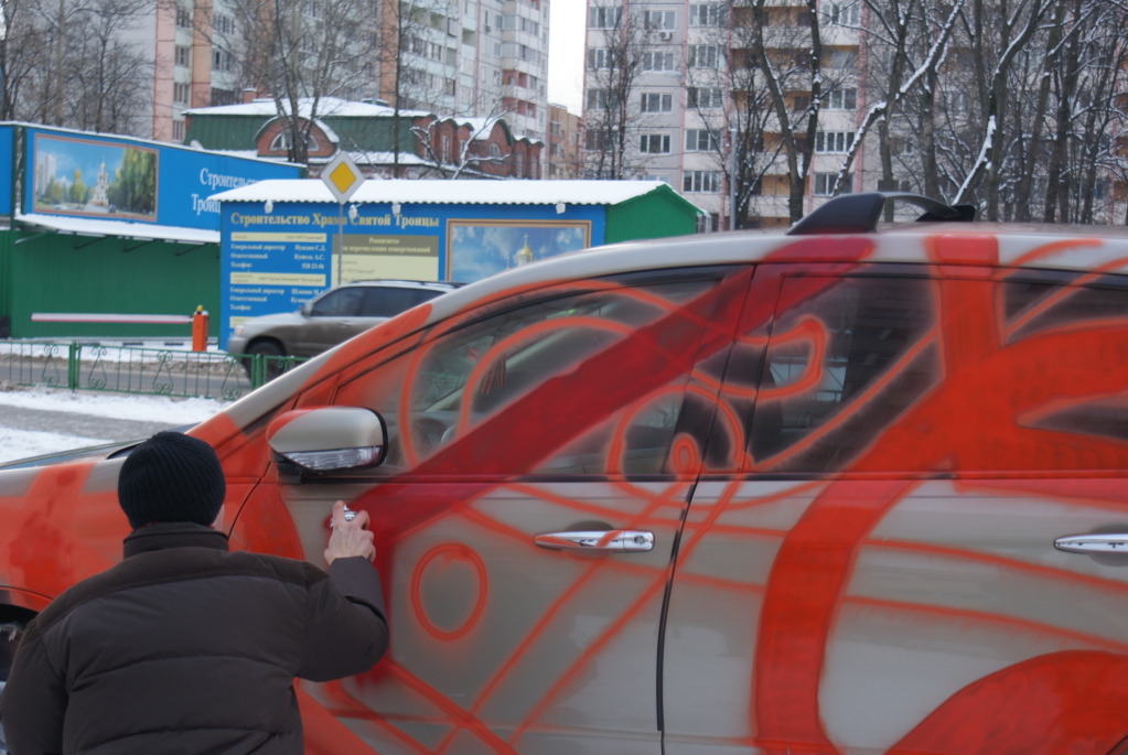 12 December, 12.00 - 14.00 in front of the picture gallery at: MO Reutov Street. Victory d.2, performance was "painting a car.