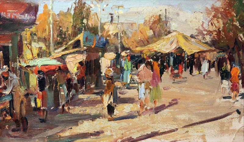 КАРАХАН Николай Георгиевич В детстве с родителями переехал в Туркестан из Нагорного Карабаха. Учась в школе много рисовал. Это увлечение привело его в Ташкентское художественное училище (1918-1921). В 1921 году он был призван в Красную Армию, где почти все время работал художником. Демобилизовавшись, Карахан преподает рисование в Туркменском педагогическом техникуме (1925-1934), потом ведет живопись в Ташкентском художественном училище (1934-1941). Огромное количество выполненных художником живописных полотен, этюдов являют собой своеобразную летопись строительства молодого Узбекистана. Яркий стилизованный рисунок, ритмичная композиция, декоративность – отличительные черты ранних произведений Карахана. Краткая биография: 5 ноября 1900 (село Нихичеваник, Нагорный Карабах) — 1970 (Ташкент) Учился в Туркестанской краевой художественной школе в Ташкенте (1919–1921) у А. В. Исупова и С. П. Юдина. В 1921 призван на военную службу, но продолжал работать как художник. Жил в Ташкенте. Работал как пейзажист, портретист, писал картины на темы быта, труда, индустриализации в Узбекистане. Испытал влияние Р. Р. Фалька и А. Н. Волкова; был близок к У. Тансыкбаеву, М. И. Курзину. С 1928 — участник выставок. Член и экспонент Ташкентского филиала АХРР (с 1928). Провел персональные выставки в Ташкенте (1960, 1965). Преподавал рисунок в Туркменском педагогическом техникуме (1925–1934), живопись в Ташкентском художественном училище (1934–1941). За свою деятельность был удостоен звания народного художника Узбекской ССР. В 1981 в Ташкенте состоялась ретроспективная выставка художника. Произведения находятся во многих музейных собраниях, в том числе в Государственной Третьяковской галерее, Государственном музее искусств Узбекистана в Ташкенте; одной из наиболее значительных коллекций работ Карахана обладает Государственный музей искусств им. И. В. Савицкого в Нукусе (862 произведения живописи и графики). Картинки с выставки: |
