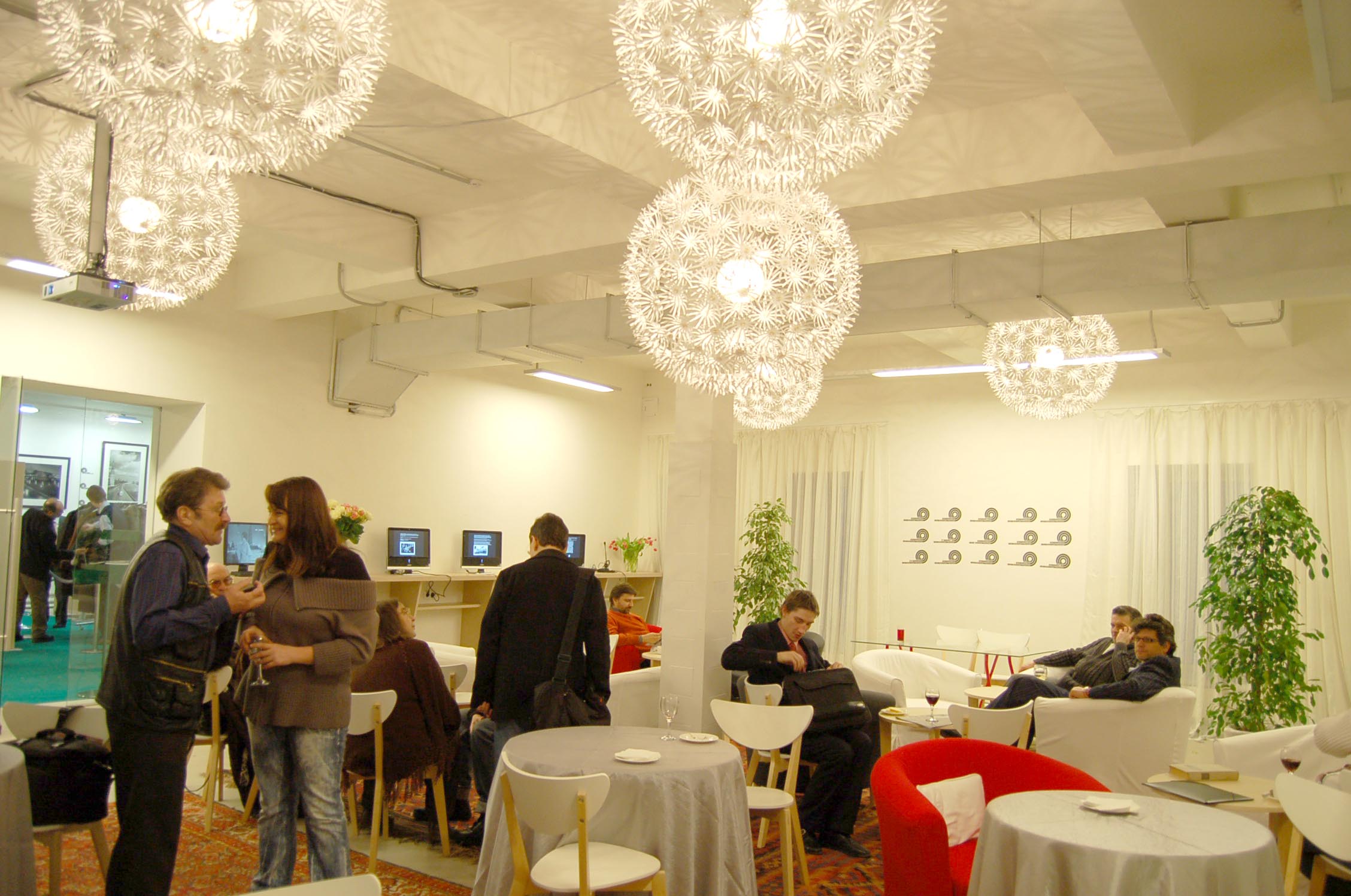 Появление Центра - событие большого масштаба. В Центре помимо выставочных залов и галереи фотографий, есть библиотека, лекторий, кафе и арт-магазин, где довольно много литературы по фотографии (книги по фотомастерству, по истории фотографии, каталоги значительных фотографов и т.д.). Это, на мой взгляд, большой шаг вперед, так как раньше для фотографического сообщества не было такого места, где проводились бы выставки, одновременно мастер-классы и где можно было бы найти большое количество полезной литературы. "Мы нуждаемся в институте, позволяющем серьезно заниматься наследием российской и советской фотографии: демонстрировать его на высоком музейном уровне, собирать материалы для его изучения, издавать книги, фотоальбомы, популяризировать фотографию, привлекая известных практиков и теоретиков для проведения мастер-классов и чтения лекций" - говорит Наталья Григорьева, директор галереи им. братьев Люмьер. Что скажешь, хорошие цели, а главное - правильные. Формирование рынка русской фотографии имеет значение. Центр фотографии открывается выставкой "Иконы 60-80-х", на которой представлено около 300 снимков различных фотографов. Тематика работ - репортажный портрет. На фотографиях знаменитые актеры, телеведущие, спортсмены, певцы и т. д. Фото: 1 - на открытии было довольно много людей, связанных и не связанных с фотографией. К примеру, мною был замечен Григорий Михайлович Чудаков, бывший главный редактор ж-ла "Советское фото"; фотограф Игорь Гневашев и др. 2 - Наталья Григорьева 3 - кафе 4 - экспозиция 5 - в Центре можно было посмотреть фильм