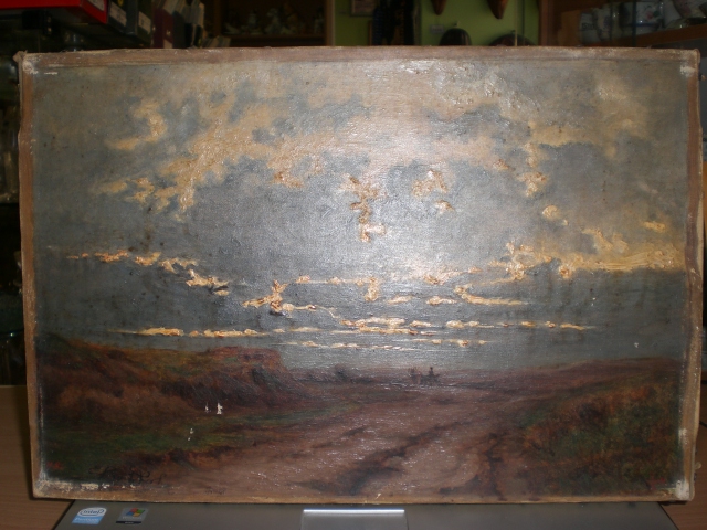 Again, it is desirable to determine the author. Pictured apparently dusk, and yes even the painting itself is dirty, so the pictures turned out dark. X /m. Size - 27h40 see Is pretty gilt frame. Dated 7 /X 4, and for some reason two signatures. |
