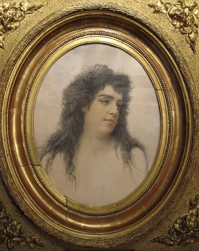 AA Rizzoni "Head blondes" (on album) 30h23 cm, paper, mixed technique. Signature of reference in the lower right corner of A. Rizzoni. Rome. 1882 "
