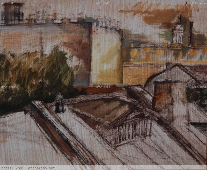 Natalia is sometimes mixed into the paint like sand, the result - such wonderful work, as a small but significantly significant "Beach of Valencia" (Natalia for a long time lived in Spain but the Spanish winter frost (yes do not laugh - it is not a trifle, and not fiction !) drove her to St. Petersburg, where the mighty iron batteries are more reliable wide-open to all winds foci). There (in the picture) scattering of brownish on the storms and scorching heat umbrellas, painted thick strokes swollen, close to scratching the paint layers of sandy beach, barely large to fit on a rough vertical lap. In the graph it technique is, of course, gouache. Dried streaks of paint, rough brush strokes - all its element, it is like a fish in water. Like her paintings, Natalia complex man, but also very interesting. As in her painting in her fight urge to light, color, ink saturation (this is Spain, in which the artist obviously in love) with the desire to go into the shadows, to merge with overcast spaces, stuffed garages, rusty pillars of power, peeling fences (this is St. Petersburg, that it was inspired) ... Where in all this is hard to say the truth, because Natalia sincere and eager to be here and there. But here's what will win - sooner or later tell her art. |