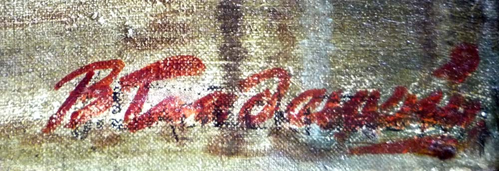 Лет 10 тому назад в Киевском клубе коллекционеров купил вот такую картину. Чувства она вызывала двоякие - но стоила недорого. Дома обнаружил, что кто-то затер подпись автора, а поверх расписался:В.Гладацкий или что-то на это схожее. Холст и работа явно старые, вот только непонятно по какой причине это было сделано. Возможно, некто В.Гладацкий решил присвоить себе авторство картины, а может быть автор был очень известный и кому-то нужно было скрыть его от посторонних глаз. Возможно, на форуме найдутся эксперты, которые смогут прочесть остатки старой подписи или выскажут свое мнение об уровне живописи, или даже укажут предполагаемого автора. Размер картины где-то 45х65 см. Если нужно, сделаю более качественные фото.