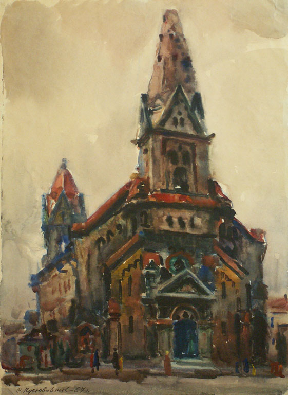 хамству, войнам: были, есть, будем... Александр Шеин Семён Иванович Пустовойтов (1921, Одесса - 1995, Новгород) окончил Одесское среднее художественное училище. Интересно, что его дипломная работа "Микула Селянович и Вольга" находится в Одесском археологическом музее. Воевал на новгородской земле и древние храмы Новгорода оказали на него такое сильное впечатление, что в 1951 г. он решил сюда вернуться. Именно здесь он сложился как выдающийся мастер акварели. Пустовойтов С.И. участник Первой всесоюзной выставки акварели в 1965 г. Его первая персональная выставка прошла в 1967 г. в городе его юности- в Одессе. В этом же году он был награждён медалью за реставрацию успенского собора Троице-Сергиевой Лавры. Его произведения хранятся в Новгородском музее-заповеднике, в одесских музеях и Санкт-Петербурге. Присвоено было ему звание "Почётного гражданина Новгорода". Прославили его знаменитые акварели, которые он начал писать в 1970-е годы, когда главной темой его творчества стал древний Новгород. Серия акварелей "Великий Новгород" представляет уникальное явление, и лучшие из листов заключают в себе такую энергию, что любимая мысль автора: памятник архитектуры- это судьба народа, его живая история и будущее, становится очевидной. Романтическая приподнятость, трагедийность- вот что характерно для зрелого стиля С.И.Пустовойтова. |