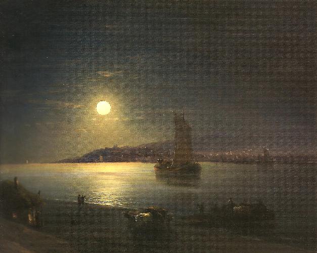 Показанная Вами картина является копией с работы И.Айвазовского "Лунная ночь на берегу Черного моря". Это её первоначальное название, встречающееся в дореволюционных источниках. В моем архиве есть открытка, выпущенная до 1917 года, с репродукцией этого полотна (см.вложение). В 2010 году данное полотно Айвазовского проходило через "28-й Российский антикварный салон" под укороченным названием "Лунная ночь" (72,5х102,5) 1887г. Видимо эта работа, навевающая романтические настроения, не давала покоя художникам - её часто копировали как известные, так и малоизвестные живописцы. Копии этой картины великого мариниста встречаются у Калмыкова Григория Одисеевича, бравшего уроки у Айвазовского, у Капустина Григория Ивановича. Есть большое количество попыток выдать копии с этого пейзажа за подлинные работы Айвазовского. Копии настолько интерпретируются, что скорее, это уже не копии, а картины, написанные по мотивам Айвазовского: кто-то добавляет пару человеских фигурок на переднем плане, кто-то убирает фигуры всадников на скале. В Вашем случае нет лодки. Известно, что идея, принадлежавшая И.К.Айвазовскому, получила множество повторов с добавлениями либо сокращениями по вкусу копиистов. Последний раз редактировалось Николай Левенко; 05.11.2011 в 14:57. |