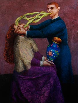 А какие вкусы называются буржуазными? Во-первых, я горожанин, человек города по складу своего сознания, а горожанин в переводе с французского – буржуа. Во- вторых, на моей памяти в «буржуазное», в крайнем случае, в «мелкобуржуазное» искусство записывали все – от импрессионистов до концептуалистов и «новых диких». А натюрморты Ломыкина и пейзажи Шишко считались «социалистическими». Кого-кого, а меня редко тянет на непринужденную легкость и декоративный «позитив». Мои вещи, как правило, многих «грузят» суггестией, внутренним драматизмом. Конечно, градус внешней агрессии с возрастом снижается. У двадцатилетнего художника, как правило, другая энергетика, чем у пятидесятилетнего. Илья Эренбург в своей книге «Люди, годы, жизнь» писал, что оценки старика порой напоминают разношенную обувь. То есть, наверное, то, что я делаю сейчас, воспринимается несколько спокойнее, чем то, что я делал лет 20 назад, но к «буржуазности», в моем понимании, это не имеет никакого отношения. У меня по-прежнему антибуржуазные вкусы, антибуржуазные позиции. И мне плевать на чьи-то поверхностные оценки.