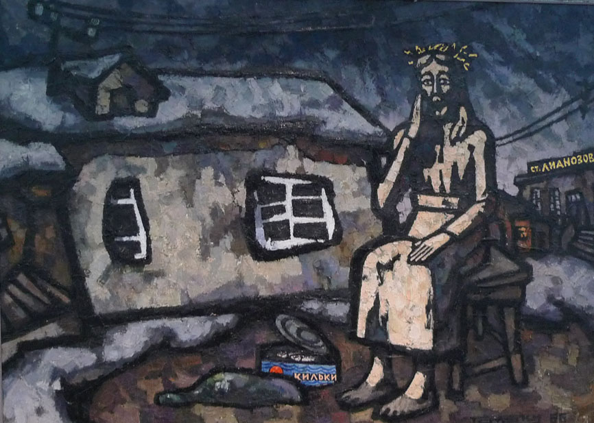 ![]() Там год хороший и, кстати, Рабин к распятому Христу и позже обращался. А вот такой "Христос в Лианозово" 1966 года был на известной выставке нонконформизма "К вывозу из СССР разрешено …" из собрания Екатерины и Владимира Семенихиных:  |