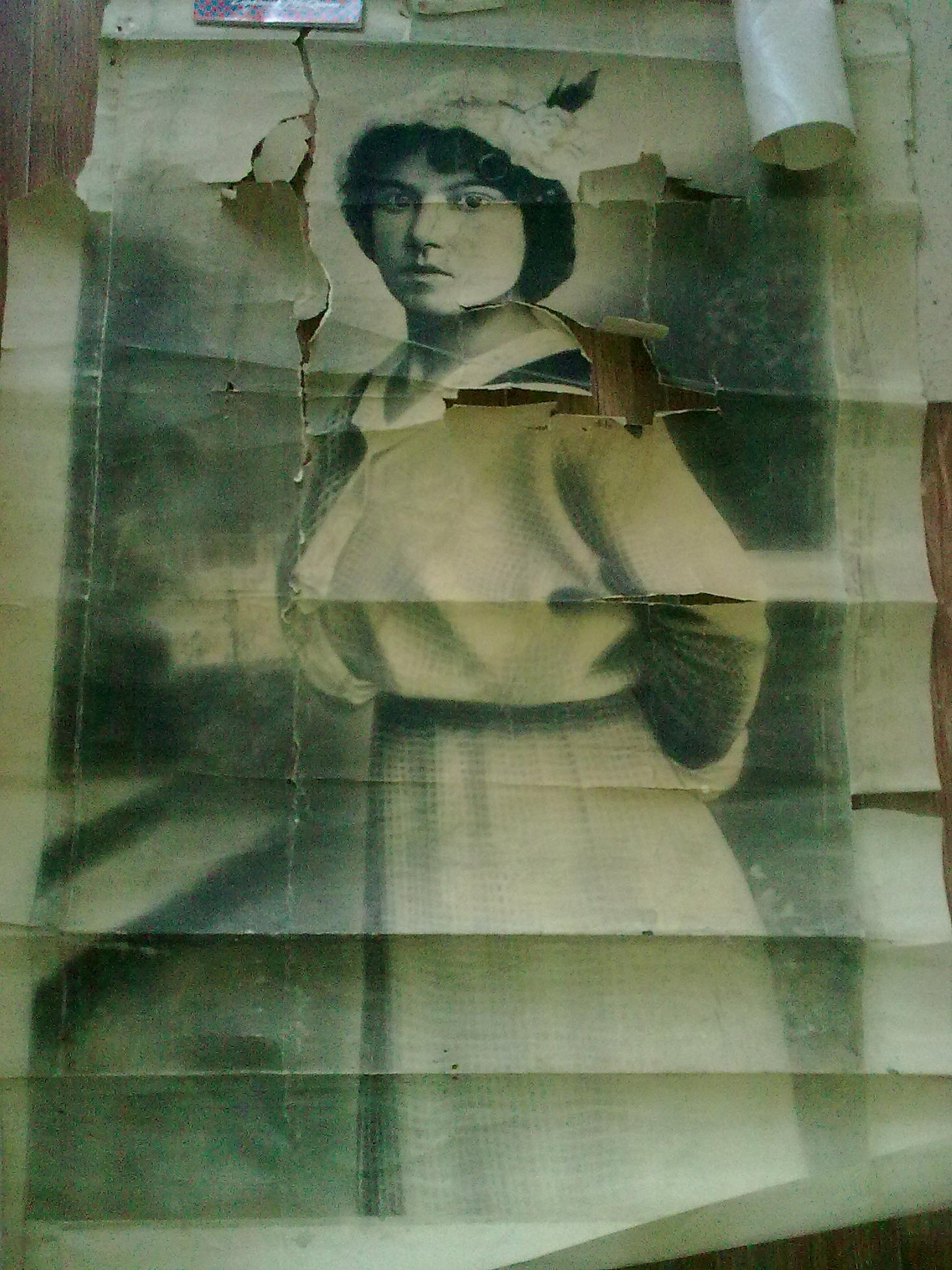 картина написанная на бумаге предположительно углем , начало 20 века 90*60 в ужасном состоянии , хранилась в сундуке у бабушки, написана была где-то на юге