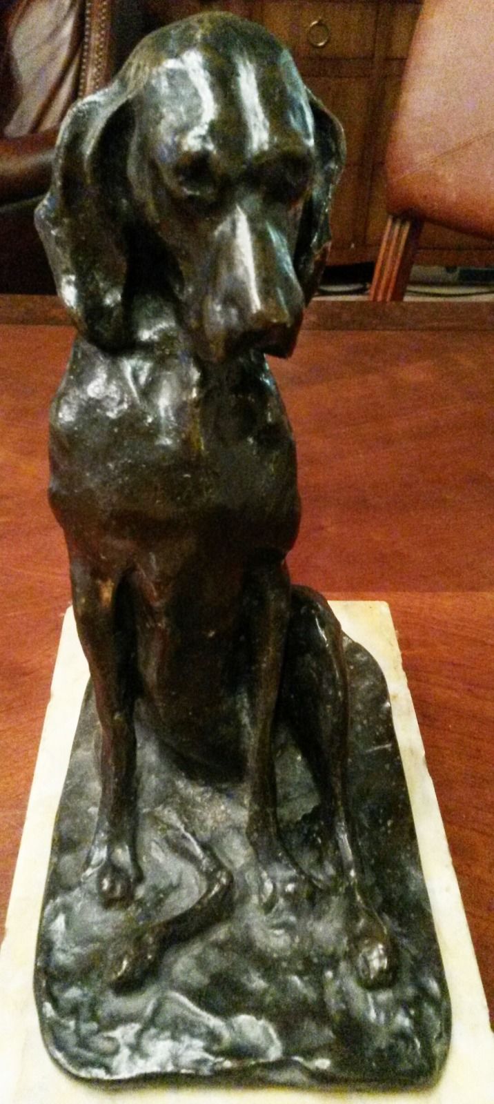 Хорошие скульптуры собаки мне известны в двух вариантах: в виде ранней отливки в чёрной патине (она датирована); более поздняя хорошая отливка с зелёной патиной (вероятно, 1910—1920-е). |
