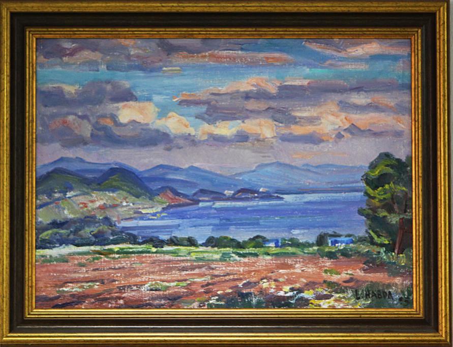 Название полотна: «Озеро Ширава» Сюжет: Пейзаж Период: 1970-е гг. Материал: холст, рама Техника: масло 51 х 69 см атрибуция: Закарпатский музей |