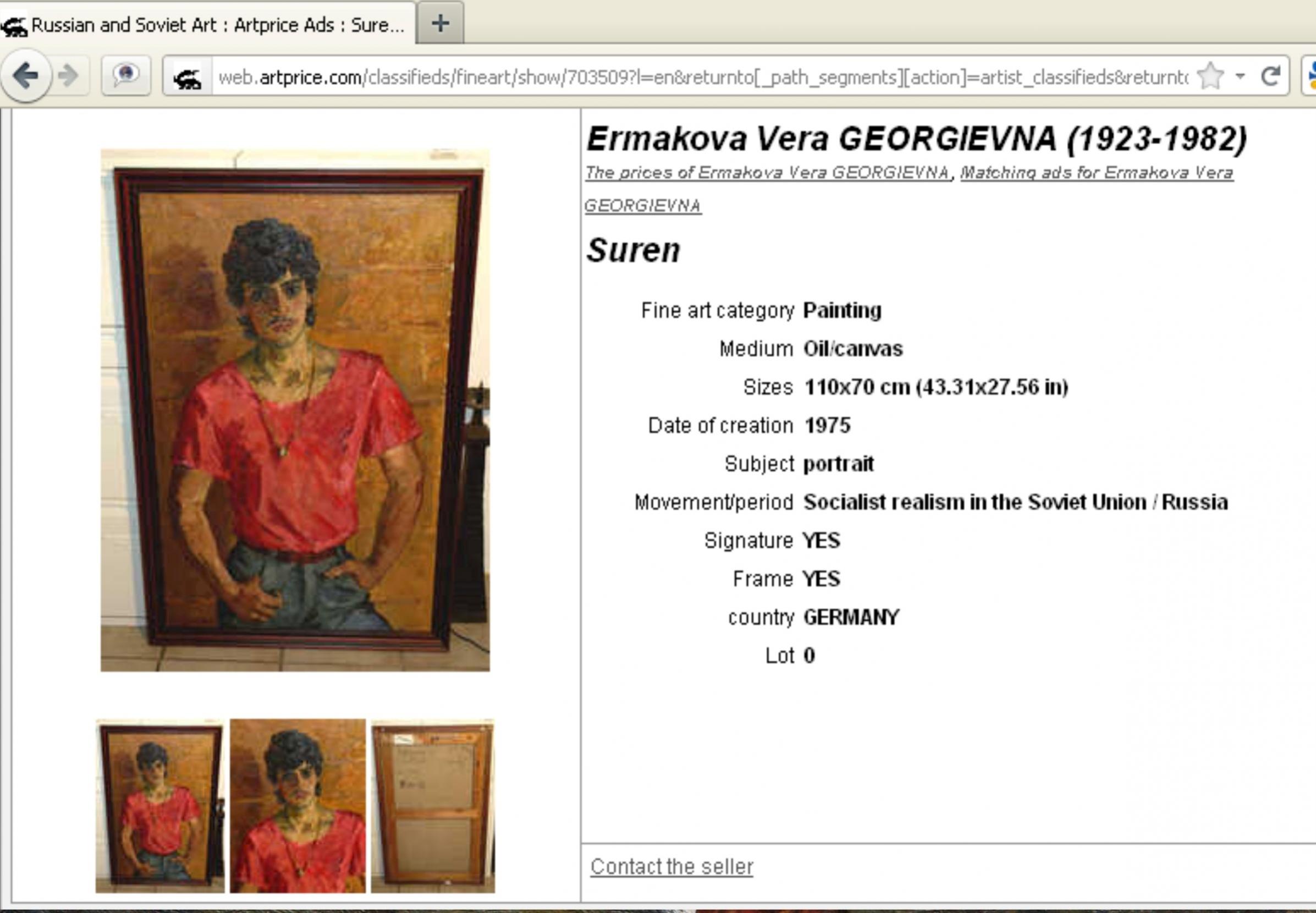 Извините, что не сразу отвечаю – интернет у меня дурит сегодня.. Зацепилась за эту тему потому, что не далее как вчера в поисках информации об интересующих меня художниках, набрав ряд фамилий на латинице, вышла на указанные выше два сайта. Одна из работ, как я писала выше, была куплена/приобретена СХ СССР с персональной выставки художника … И вот, каким-то образом эта работа появилась на данном сайте…, как я понимаю, кто-то(?) пытается продать ее через какой-то аукцион (?) ... За сколько?, что тоже интересно - не нашла. Короче, вопросов возникло много, но, не имея должного опыта, брожу по этому сайту, как «в сумрачном лесу», и к тому же, со слабым знанием иностранного языка, пытаюсь найти ответы на мучающие меня вопросы… ![]()