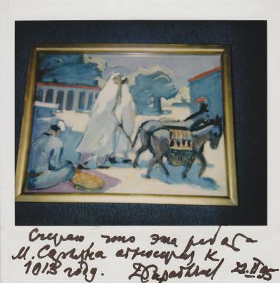 "M. Sarian. Persiya.1913 (?) . Earlier in the meeting of art Goldmann ( from his sister Raisa Adolfovna ). On the back of the sheet ( to duplicate ) Set the size of the work in inches . Duplicated on canvas in RM in 1987. S.SH . " Photo of the inscription D. Sarabianov "I believe that this work of M. Saryan refers to 1913. Sarabyanov D. 22.02.95g . " In time of doubt, a work belonging to the creation of Sarian. A more precise emerged a clear conviction that this is not Sarian. Appealed to the Sofia Saryan received the following response: "Hello , sorry for late reply, and he will be as follows : with all due respect to Dmitry Sarabianov this picture, in my opinion , has nothing to do with the Sarian - no palette , no picture have nothing to do with the style and manner of the artist. Always glad to help. Sophia ". Dear forum users - is there any thoughts about the author of the picture? Thanks in advance for any suggestions . |