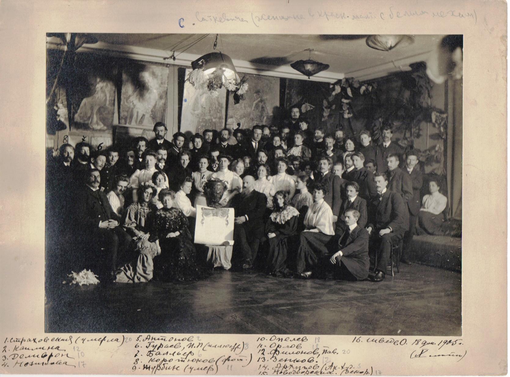 декабря 1905 года. В первом фото, П.Филонов стоит в центре с усами, за Л. Дмитриев-Кавказким, а во втором на самом верху. Обратите внимание, какое светлое, одухотворённое и сосредаточенное лицо. |