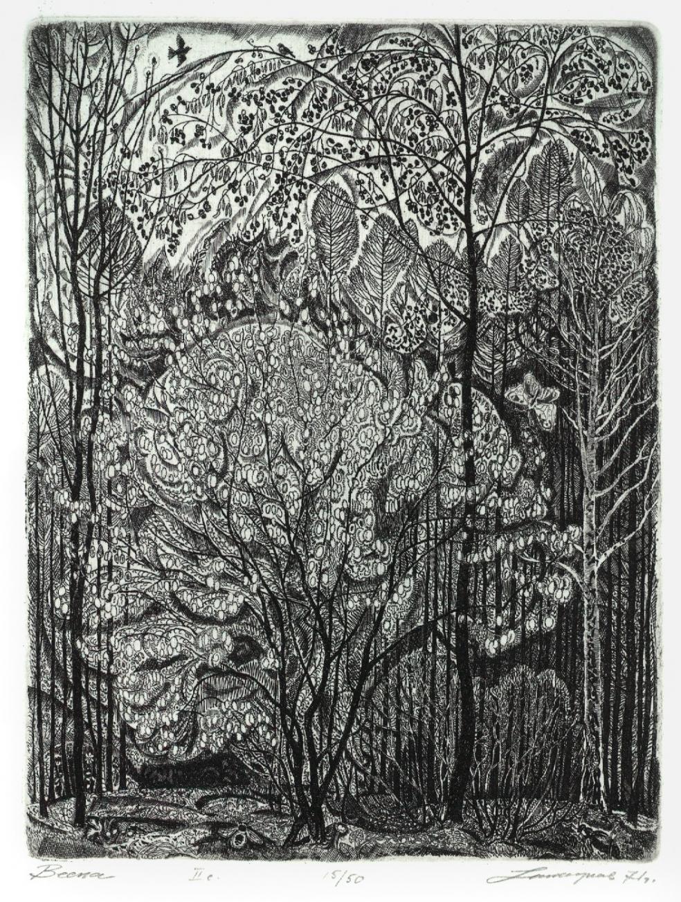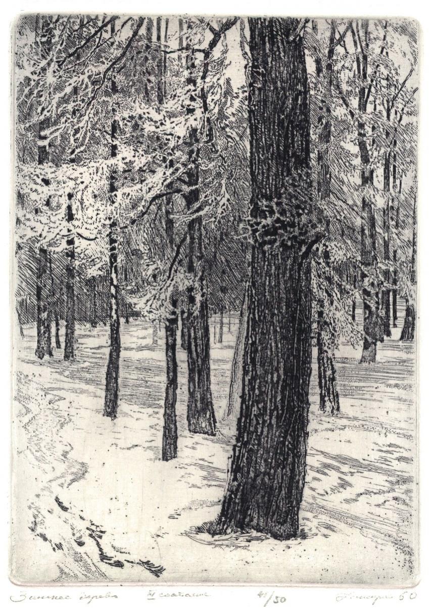 Два дерева - уникальнейший пробный оттиск, 4-ая проба. Всего было 12 проб. Цена - 75000 руб. Дятел - 16000 руб. Морозное окно - 25000 руб. Последние заморозки - уникальный оттиск из первой партии, без последующих изменений! Цена - 70000 руб. Яблоня цветёт - 40000 руб. Старое гнездо сороки - 40000 руб. |