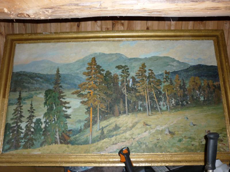 картина! Размеры 0,72 на 1,50м. Холст, масло. На холсте написано "Семенова". есть проыв заклеян.