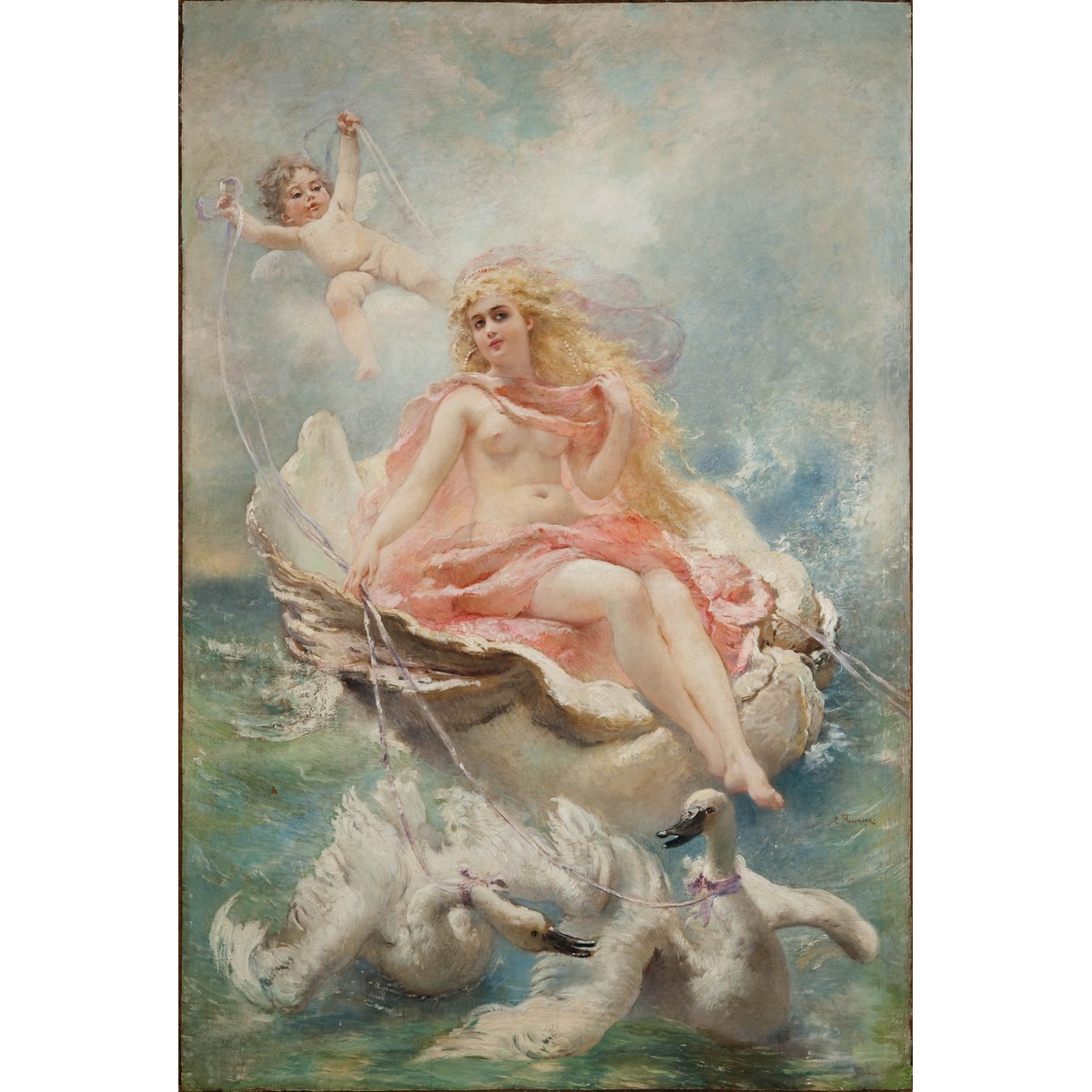 На первый взгляд похожа на подготовительную работу к известным панно в особняке барона фон Дервиза ("Туалет Венеры", "Богиня вод", "Аллегория живописи", "Аллегория поэзии" и т. д.).