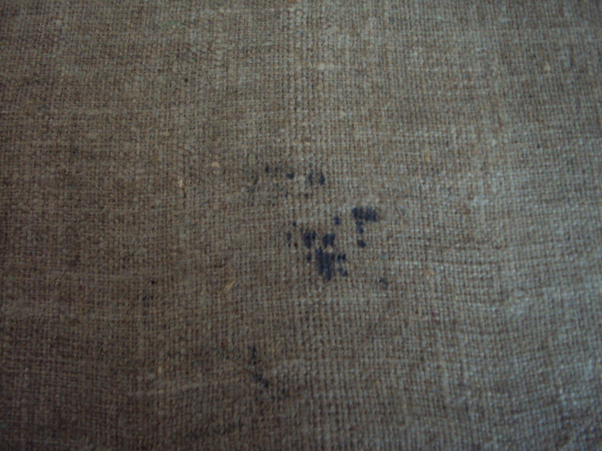 спасибо всем за помощь в определение возраста холста в теме N1 хотелось бы узнать что-то по конкретнее про холст,каких годов.предлагаю еще фото на холсте по горизонтали идет такая каемка и какое-то клеймо может быть фабрики изготовителя.