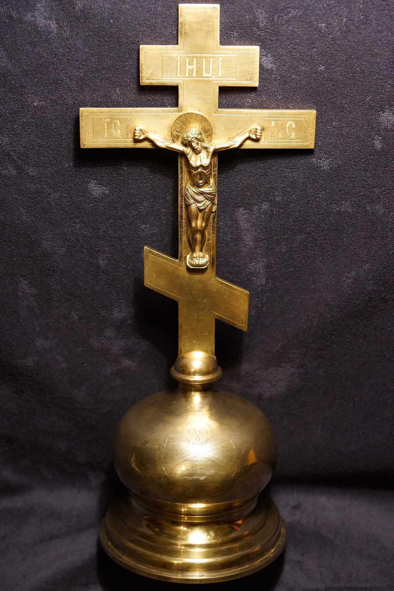 Материалы – латунный сплав, бронза, металл. Техническое исполнение: литье, шлифовка, гравировка, монтировка. Размеры: Высота - 38 см. Крест – 25х15 см. Диаметр основания – 14 см. Вес – более 1500 гр. В отличном состоянии. Прекрасный подарок приходскому священнику или епархиальному архиерею. Цена договорная. arz-wien@rambler.ru |