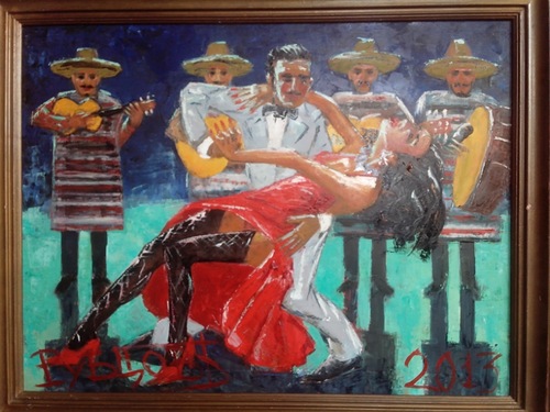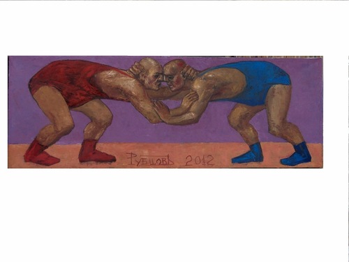 В своих картинах художник показывает нам, как надо ставить ноги и держать корпус, руки, рисуя танцующих, художник учит нас танцевать, а так же задорно и залихватски, отдаваться танцу. Серия картин «Танцы», смотрится как концерт Игоря Моисеева с номерами «танцы народов мира» также зажигательно, а главное по – рубцовски с юмором, и своим подтекстом «все мы танцоры, когда чуть на грудь примем», или "хорошему танцору ....(ничто) не мешает". |