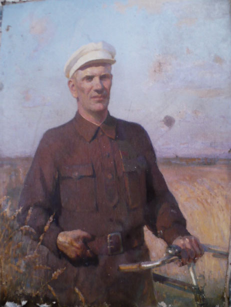 Dear experts, who can help restore a signature? The painting shows the collective farm chairman, deputy of the Supreme Soviet of the USSR from 1946, Hero of Socialist Labor in 1951 Zadorov Georgy.