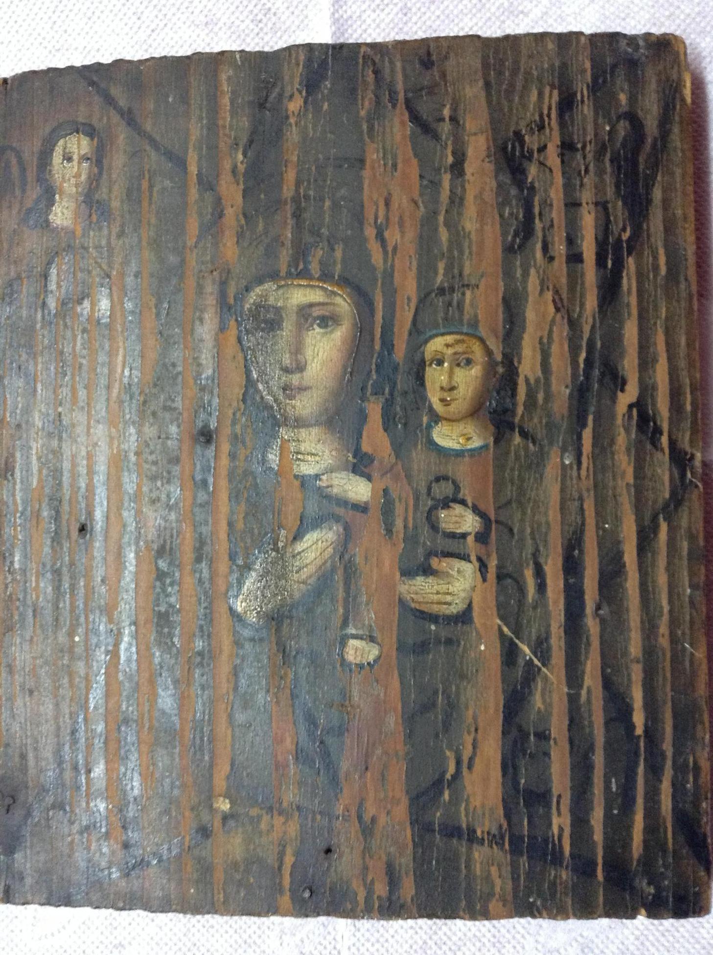 Да, это щепная "ликорукая" икона, кон. 19 - нач. 20 века, имела оклад из фольги и киот.