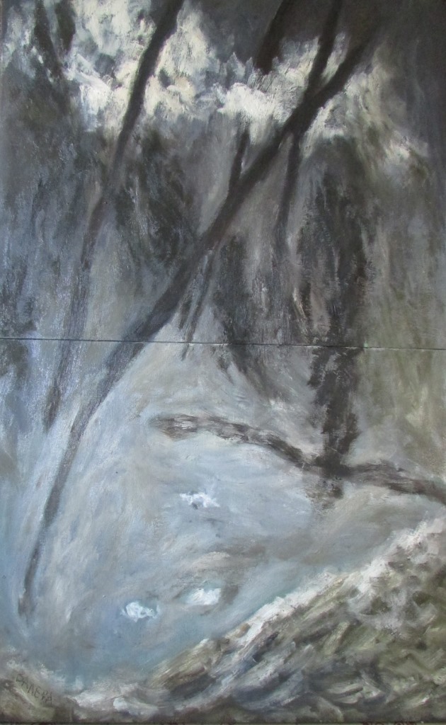 Песин В. Прогулка щенка. 1992 г. Холст, масло. Размер 120 на 90 см.