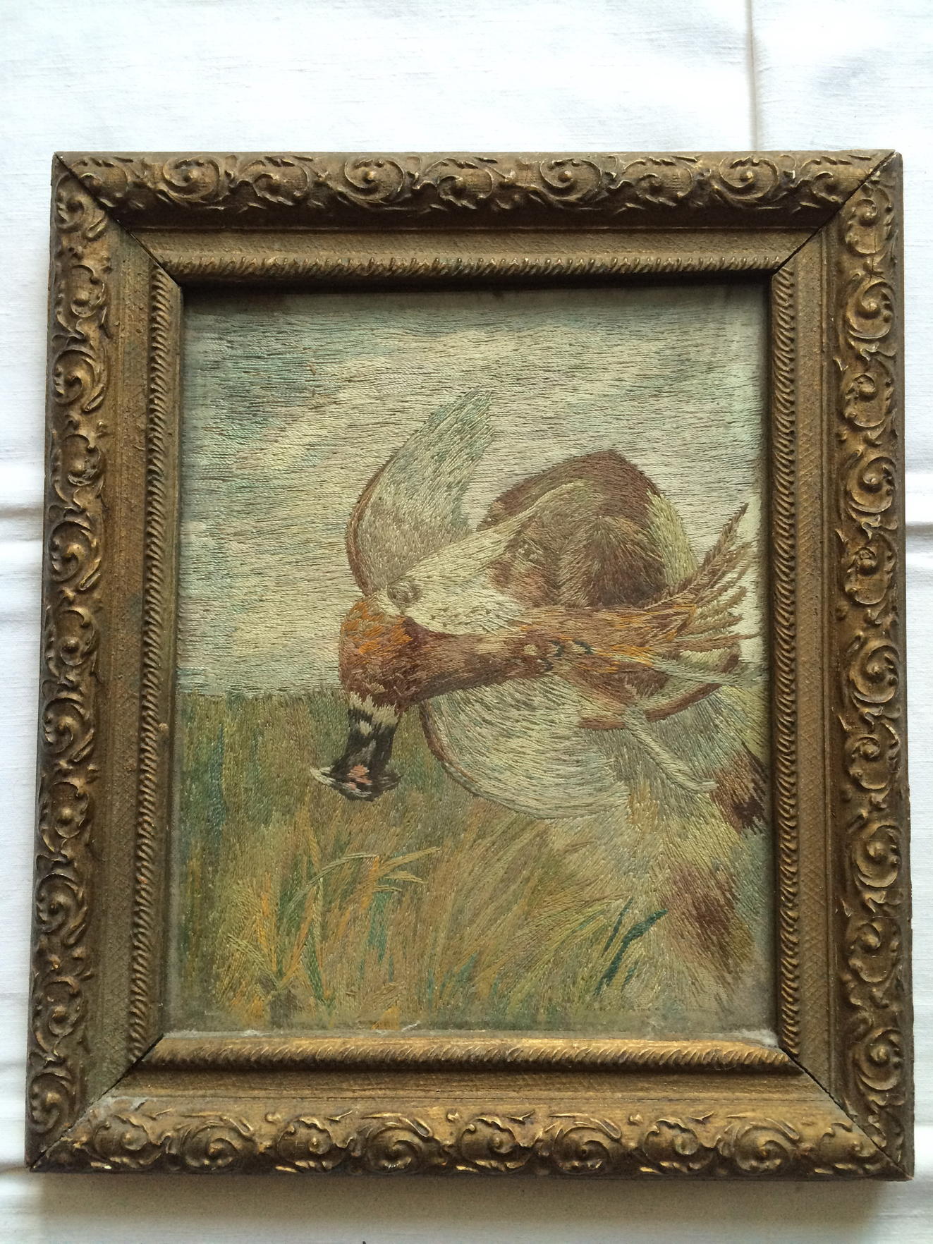 Остались только такие: "Мальчик в шляпе", 27x18 см. - 20$ "Вокзал", 20x26 см. - 20$ "Собака с добычей" (шитьё), 23x28 см. - 100$ "Пейзаж", холст, масло, 29.5x39.5 см. - 50$ |