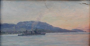 30 000 рублей Гибралтар. Правый борт. После захода солнца 1957 Картон, масло. 6х19