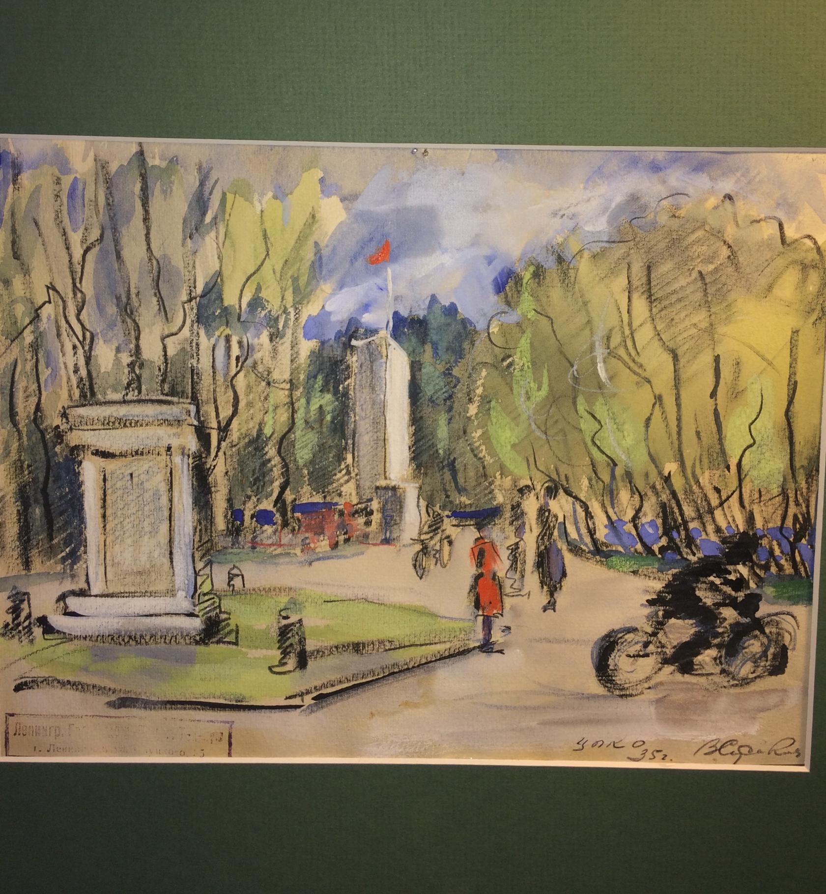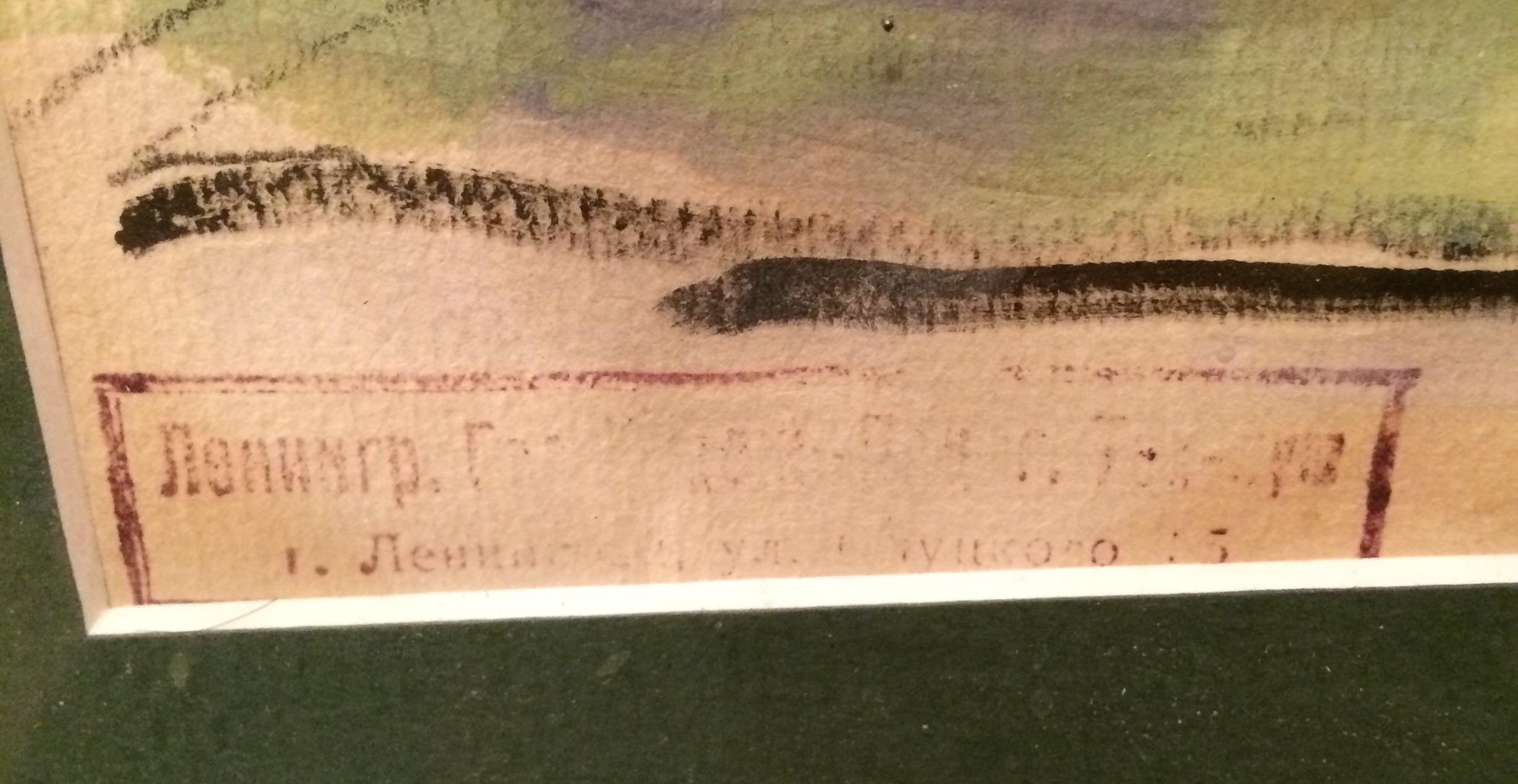 Размер работы 20х27 см. Имеется печать в левом нижнем углу разобрала только Ленинград ул.Слуцкого д. 5, (Таври́ческая улица ныне (с 1859 по 1918 год и c 1944 года; с 1918 по 1944 год — улица Слуцкого). Судаков Владимир Михайлович (1912 – 1994). График, член Союза художников СССР. Занимался в студии Дома искусств, где акварель преподавал Н.А.Тырса, рисунок - К.И.Рудаков. В 1933 - 1938 учился в Ленинградском художественном техникуме. Работа оформлена в современную раму и паспорту. |