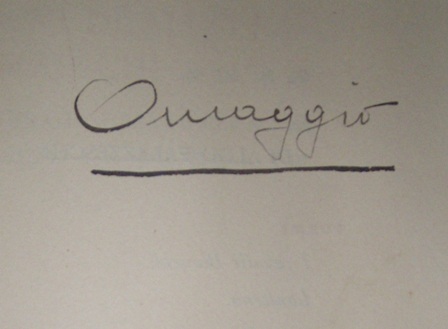Альдо Палаццески (Aldo Palazzeschi) (псевдоним; настоящая фамилия Джурлани, Giurlani) Альдо (2.2.1885, Флоренция,— 17.8.1974, Рим), итальянский поэт – футурист и писатель. одна из самых ярких и оригинальных фигур в итальянской литературе XX в. Его прежнему причисляют к величайшим поэтам современности. Соратники называли его правой рукой Филиппо Тимазо Маринетти и « знаменем» итальянского футуризма. Современники считали странным и причудливым. В 1909 году поэт выпустил одну из первых, футуристически оформленных, книг, сам нарисовав обложку. (Интересно, что в том же году вышли знаменитые «Манифесты» итальянских футуристов.) Книга называлась: "Poemi di Aldo Palazzeschi." Издателем был мнимый Чезаре Бланк ( на самом деле так звали кота, жившего у поэта)., 1909.Firenze.Tipografico Aldino.. Интересен автограф автора на шмуцтитуле : Omaggio. Т.е. 'Дарю'. Книга вероятнее всего была привезена в Россию в 1914 Маринетти, вместе с другими книгами и материалами , для подарка русским футуристам. Книга редка не только у нас, но и в самой Италии. Последний раз редактировалось раскатов; 19.07.2009 в 17:25. |