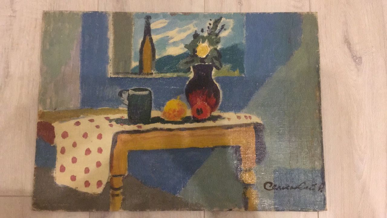 Из-за того, что качество изображений очень плохое, я сперва подумал, что автор натюрморта - Александр Ведерников, 1950-х и 1960-х годов.
