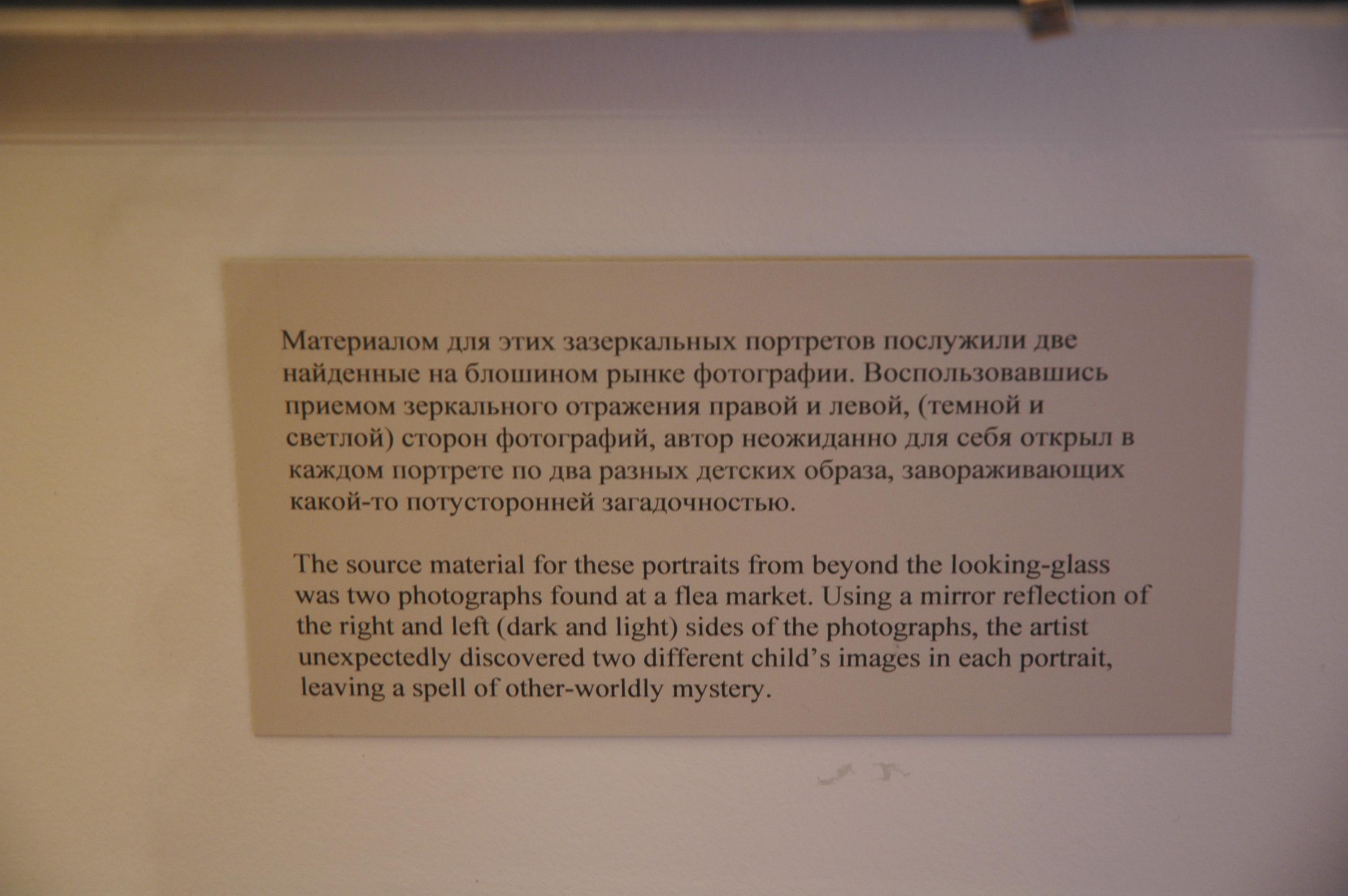 Идея: Актуальность тем, затронутых в литературе XIX века, не потеряна и сегодня. «Проект не является просто иллюстрацией к произведению Гоголя». Это философско - художественные размышления и фантазии художников на тему…. Выставка небольшая. Пока ходила, пыталась вникнуть и понять. В голове невольно вертелось «мертвые, мертвые….». Вот на эту тему пофантазировать у некоторых получилось. 2. Андрей Филиппов. Мертвые души. 2009. Фото 3. Виктор Скерсис. «Какие уши!», 2009. Х.,м. 4. Медведь смотрелся очень живенько. 5-6. Никита Алексеев. «Душа зайца в золотой раме», 2009. Х.,акрил. Из аннотации к работе: «Это моя работа – попытка создать «икону», посвященную alter ego Гоголя Чичикову, перевоплотившемуся в зайца» 7-10. Вадим Захаров. «Приложение ко второму тому «Мертвых душ», найденное на Глоелерштрассе, 22». Издание содержит 30 листов. 1993 – 1994, тираж – 12 экз. |