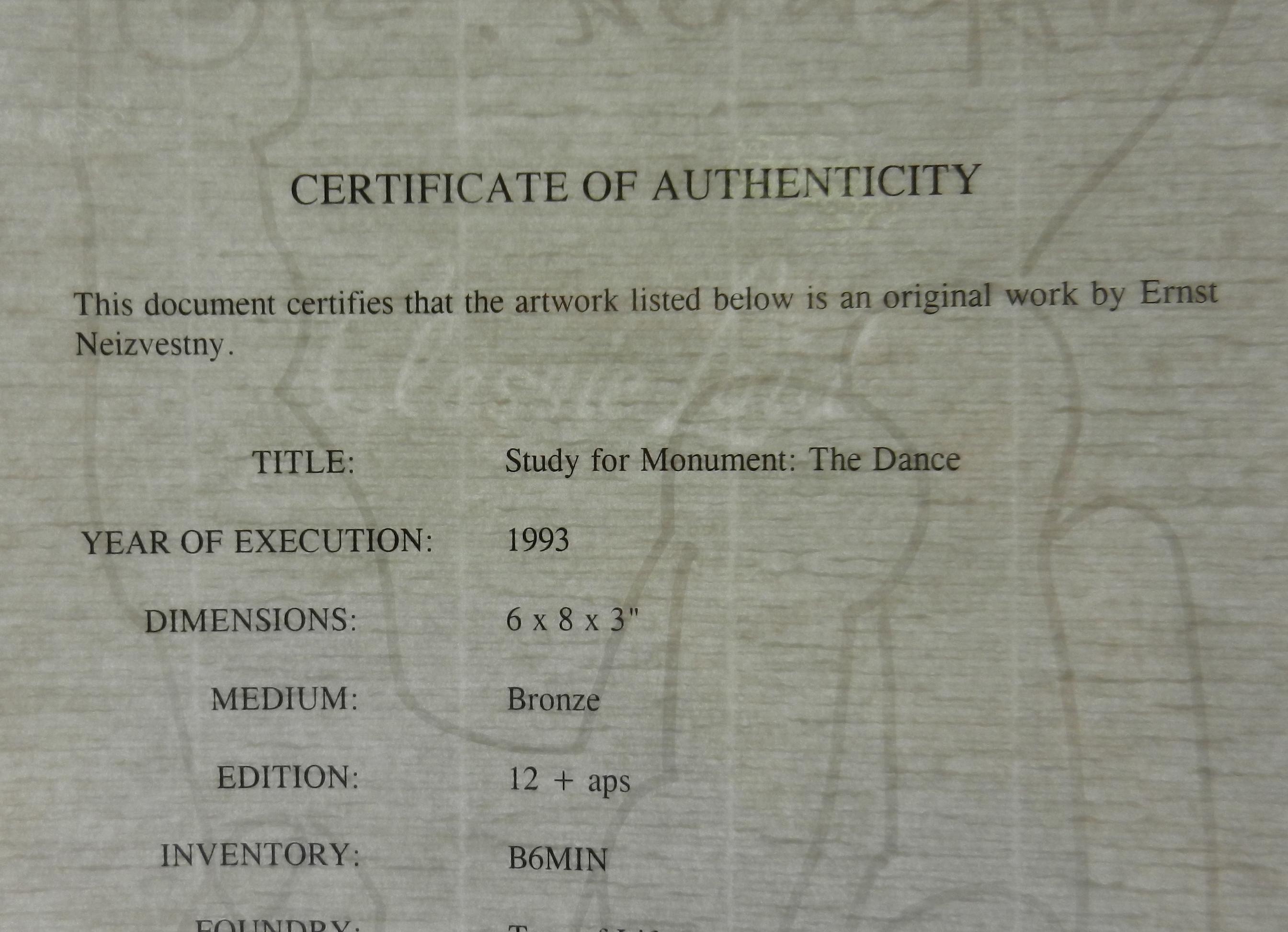 Скульптура покупалась в США, у супруги автора. Несколько лет назад выставлялась в музее Эрнста Неизвестного в Екб.