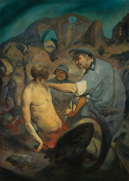 А я полотно всё равно собирался в два раза сложить. Мне кажется композиция значительно выиграет, если центром картины будет не оголённая нога, а тога в обрасти подмышки... (а горизонтальная центральная линия - проходить через белое пятно на груди И.Х.) |