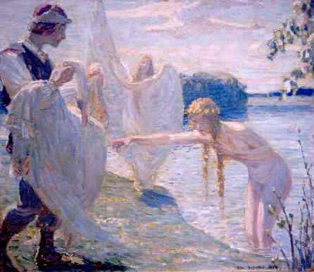 С 1888 по 1894 год будущий живописец учится в Академии Художеств у художника В. Е. Маковского. Он – член кружок «Рукис». После учёбы Розенталь возвращается в Салдус, где строит собственное ателье художника Башню Мечты. Деньги зарабатывает картинами на заказ. Рассказывают, что однажды друзья будущего классика пустили слух о том, что на одной из картин, изображающих нагую девушку, изображена супруга местного трактирщика. Как только до того слух дошел, тот немедленно купил картину, с глаз долой... Однако, шутки шутками, а Салдус - городок маленький, и отправился художник в Ригу. С 1901 по 1915 Розенталь живёт и работает в Риге, где он пишет картины и учит живописи как в собственной студии (с 1906 по 1908 годы), так и в Рижском городском художественном училище (с 1916 по 1914 годы). Самые известные картины Яниса Розенталя - «После обедни», «С кладбища», «С работы», «Под рябиной», «Портрет женщины в белом», «Песня пастушки», «Принцесса и обезьянка». По стилю работы живописца близки к стилю поздних передвижников. Темы, как правило, относятся к жанровым сценкам из жизни народа Латвии. Часто изображается природа. Поэтому художник считается основоположником социальной и жанровой живописи Латвии. Розенталь написал также ряд портретов известных современников, а также сочетал два жанра - портрет и пейзаж. Розенталь работал также в области монументальной живописи, иллюстрировал книги и создавал графику. Скончался художник в возрасте 51 года в Хельсинки, 13 декабря 1916 года. |