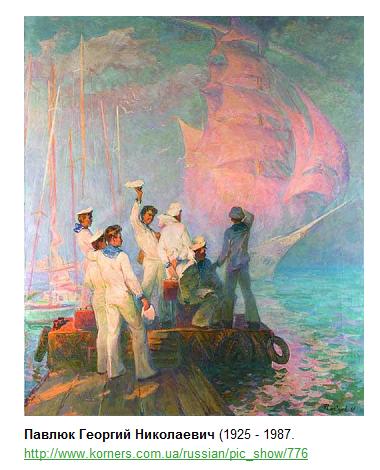 У Вас в подписи к фотографии я вижу "Павлюк ГАЛИНА". Но у её отца-Георгия Николаевича-есть похожая вещь 1981-го года-"Паруса нашей юности" (х/м, 190х160).