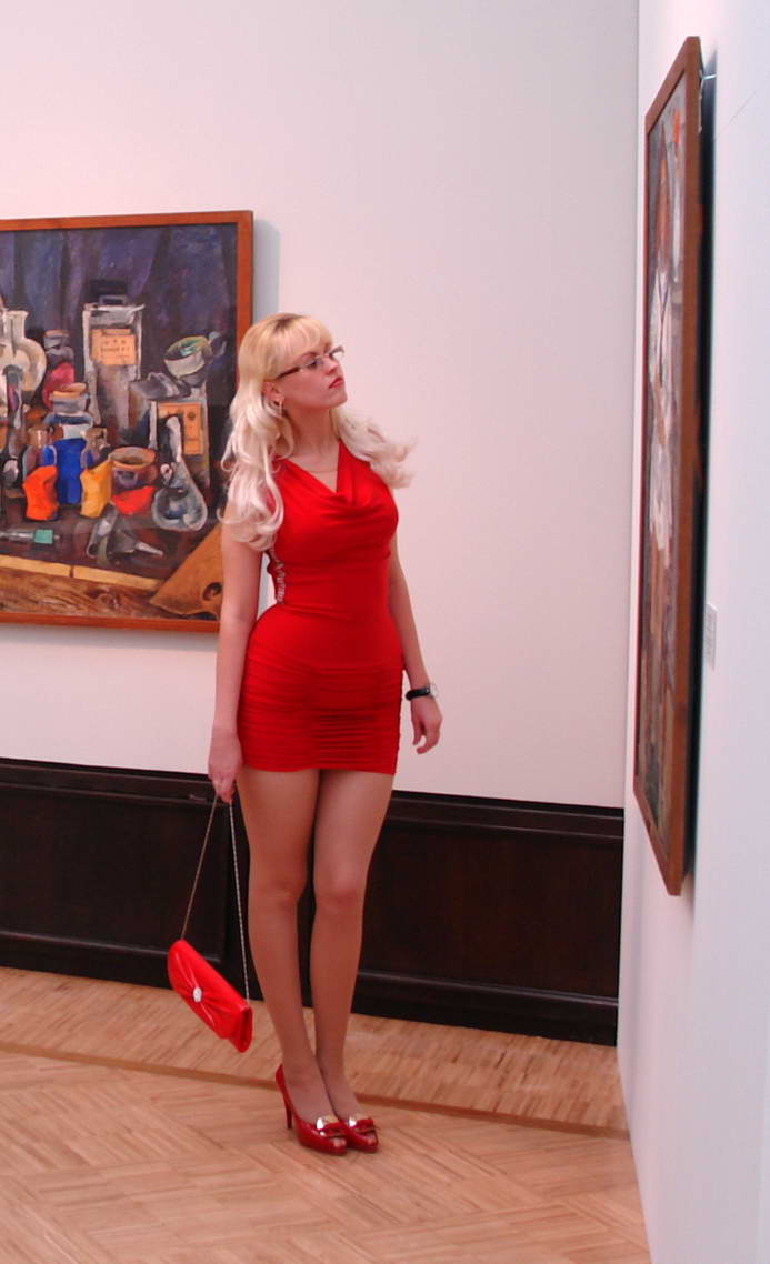 - СМИ - Открытие выставки - зал Дальше пойдёт юмор. Щёлкнуть что-то смешное цели не было, но больно сами в кадр просились сценки из жизни. - Двое на картине и их отражение в зале - Девушка в красном честно рассматривала картины, а за ней гурьбой шла толпа папараци. Девушка вела себя совершенно естественно и казалось совсем не замечала преследователей. Увлечена была высоким искусством, а фотографы тут-то себя и показали.  |