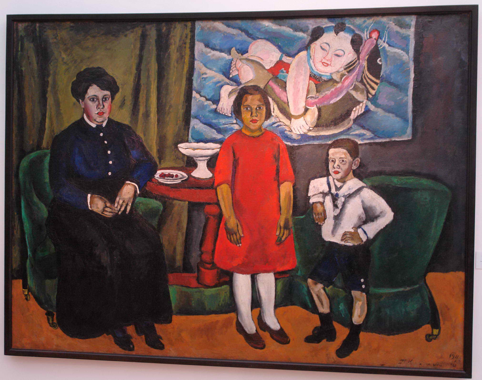 - В мастерской, семейный портрет 1917. Если присмотритесь то перед картиной увидите микрофоны, полное впечатление что персонажи будут сейчас выступать - Семейный портрет 1912 - Семейный портрет на фоне китайского панно 1911 - Пиво вобла 1912 - Печка 1912 - Агава 1916 - Портрет скрипача Ромашкова 1918 - очень понравился. - Самовар 1917 - Мост на Наре. Ветер. 1917 - Фабрика на Наре 1918  |