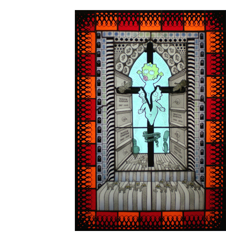 Looks like ... In New York there were stained with the Simpsons New York artist Joseph Cavalieri, presented the first installment of a series of stained glass, which will be devoted to The Simpsons. This is reported on the official website of the artist. Currently on view are available 7 works, but in total they will be 20. A series called "Missed an episode" (Missing episode). Three of the works presented have already found their buyers. Scenes for stained Cavalieri are processing classical medieval scenes. For example, in one of the works of Selma and Patty (Marge's sister) appear in the role of angels, clad in bathing suits, while the other depicts Bart voznosyaschimsya to heaven. According to Cavalieri, the production of stained glass, he uses traditional medieval techniques. Thus, the glass manually at first cut into pieces and then painted by. Fragments of stained glass are subjected to heat treatment at a temperature of 677 degrees Celsius, resulting in paint particles fused into the glass. After this has colored pieces of glass placed in a special metal frame. The new series is not the first attempt Cavalieri, in his own words, to make stained glass again popular. "Right now, people see only the stained-glass windows in churches. My goal - to bring this wonderful medieval technology in every home, start a kind of glass rennesans" - said the artist newspaper The Daily Telegraph. http://www.lenta.ru/news/2010/01/19/simpsons/ artist's website:http://www.cavaglass.com/gallery/1.GORMENGHAST.htm  |