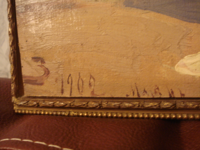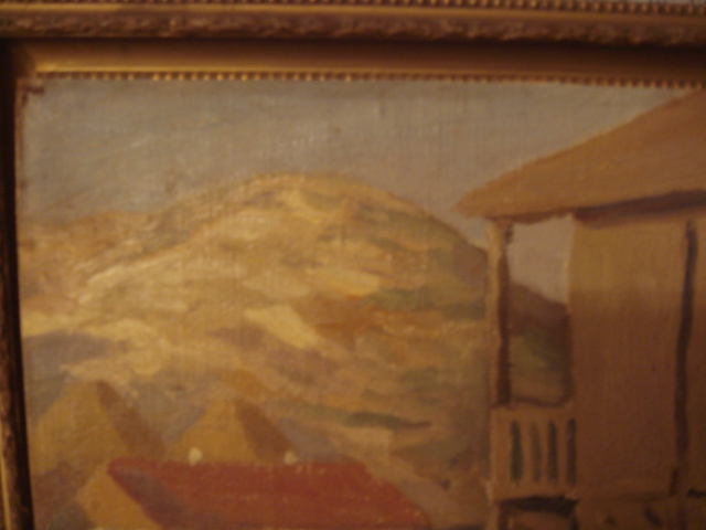 Как следует из надписи на бирке с выставки из частных собраний, картинка называется "Мельница" (а не "деревенский сортир", как можно предположить с первого взгляда). Конечно, есть у этого художника вещи и получше, но, зато и цена вполне умеренная - 4.000 долларов.