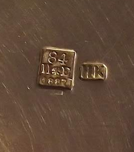 Стилистика предмета, на мой взгляд, никак не совпадает с датой в дарственной надписи и в клейме. Не могли, мне кажется, сделать в России такую кружку в 1887 году. Да и клеймы сами у меня вызывают вопросы. |