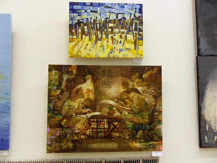Авторский проект Н.Георгадзе. Выставки проходят в едином выставочном пространстве (2этаж, 8зал). В них принимают участие 102 художника. "Без названия"-выставка абстрактного искусства, "Время странствий. Восток-Запад" обозначена как выставка современного искусства. Многие художники принимают участие как в первой, так и во второй выставке одновременно. К сожалению, в некоторых случаях уже не могу точно сказать, на какой выставке та или иная картина была выставлена - к абстрактной живописи тяготели все или почти все участники, поэтому выкладываю фото все вместе, без разделения на проекты. Авторы указаны в названии файла (слева внизу картинки).