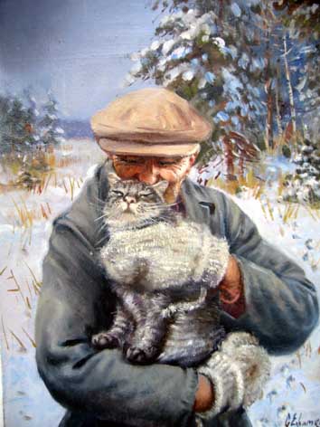 Personally, I buy paintings by young artists on the basis of criteria - like \ do not like. That's like Evgeny Titov - bought the five paintings. I have to somehow show at the forum, but the show again, because like. I bought this so my grandfather with a cat, too - just like the picture. Is a young St. Petersburg artist Sergei Efimenko, the picture is called "Friendship"