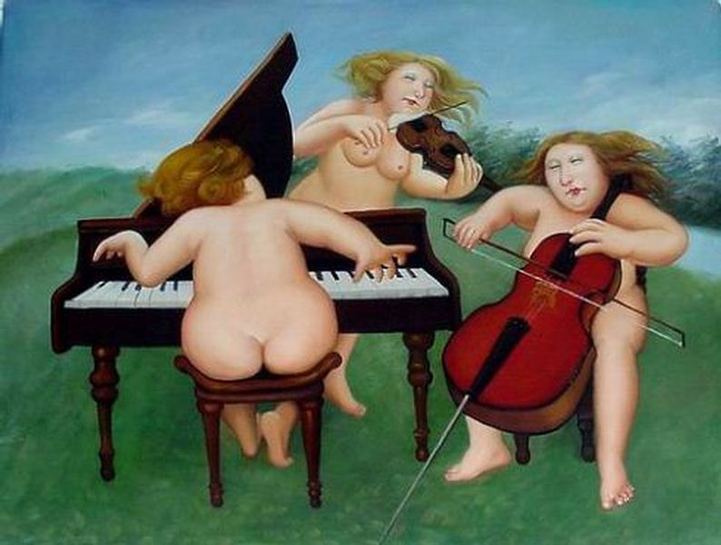 Если рассматривать эти картинки какое - то продолжительное время, становится не по себе. Жуть! Художник слабоват, конечно же, особенно если вспомнить Магритта, Кустодиева, Пиросмани, Руссо, Честнякова. А Ботеро какой -то скучный, рассудочный(просчитанный, надуманный). Картинки и скульптурки как сувениры в лавке. Вы только задумайтесь -одно и тоже на протяжении многих лет! То ли дело Пикассо или Ларионов, постоянный поиск, фонтан идей, решений! Вот это драйв! А это?! Не дотягивает до великого… Впрочем, в малых дозах вполне допустимо…